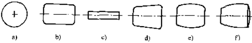 e)對稱型球(qiu)面滾子 f)非對稱型(xíng)球面滾子