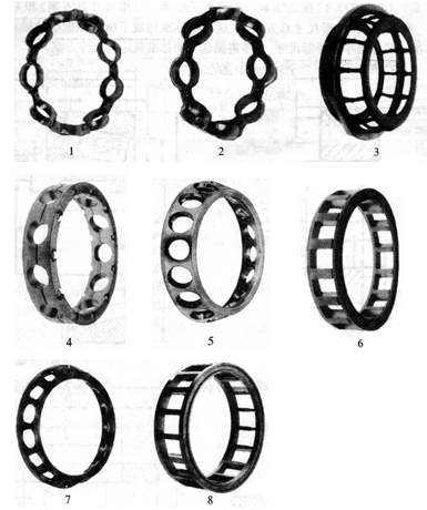 7單列角接觸球軸(zhou)承實體保持架;8圓(yuan)柱滾子軸承實體(tǐ)🏃保持架;